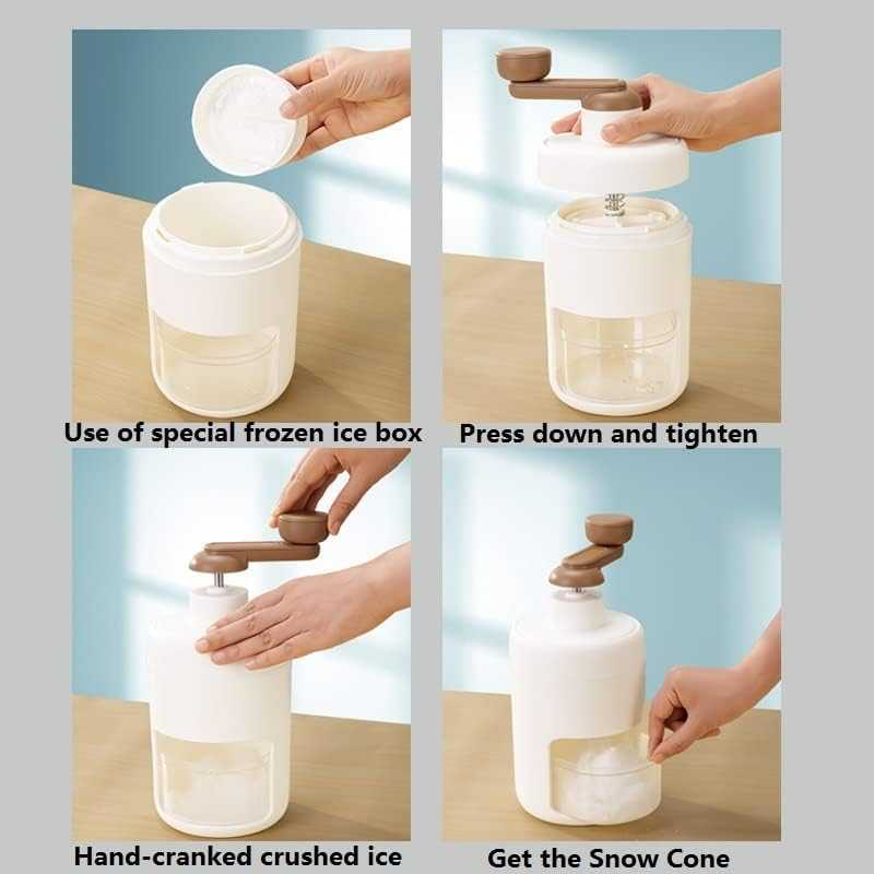 Its compact size makes it ideal for use in homes, offices, or small businesses. With a simple hand-operated mechanism, users can effortlessly turn ice cubes into fluffy snow-like perfect texture.